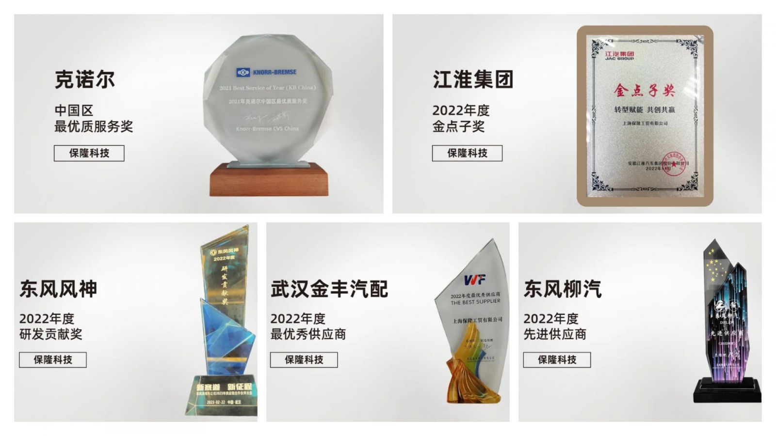 近期,威廉希尔收到多位客户颁发的奖项:克诺尔集团中国区最优质服务奖、江淮集团金点子奖、东风风神研发贡献奖、东风柳汽先进供应商奖、武汉金丰汽配最优秀供应商奖。