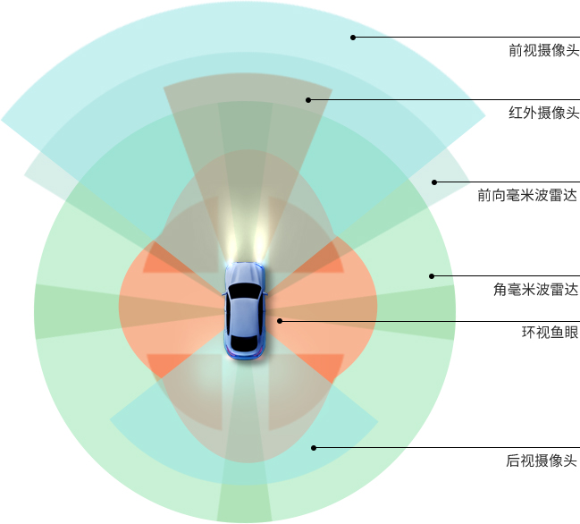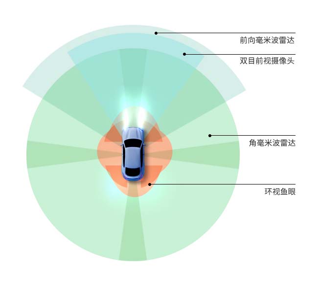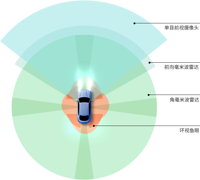 通过前视广角智能摄像头,车辆探测到最远前方300m的目标,显著提升车辆的制动安全性。